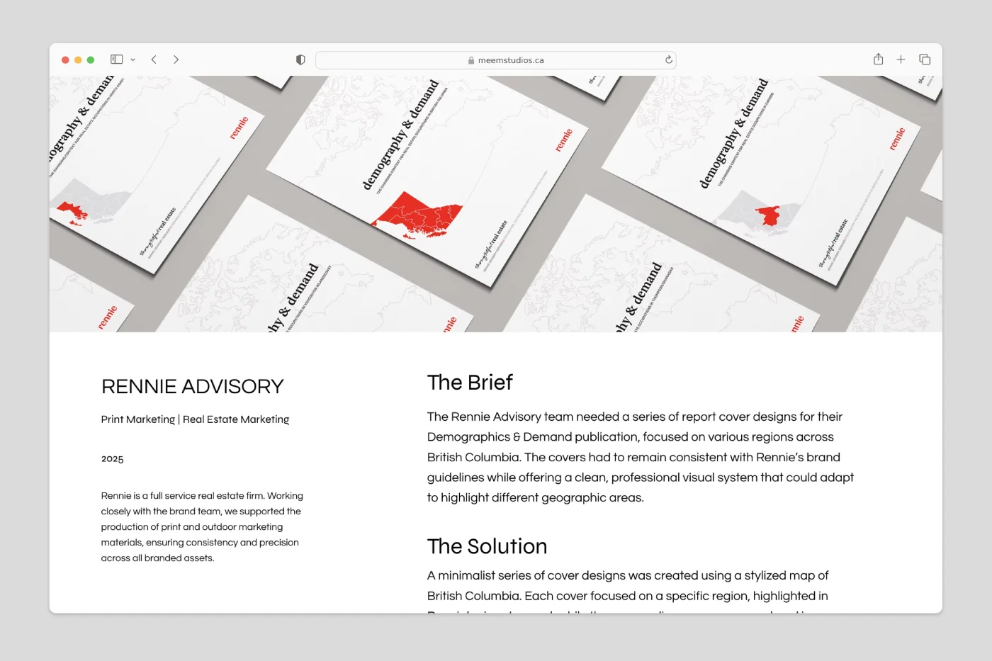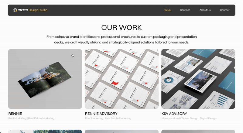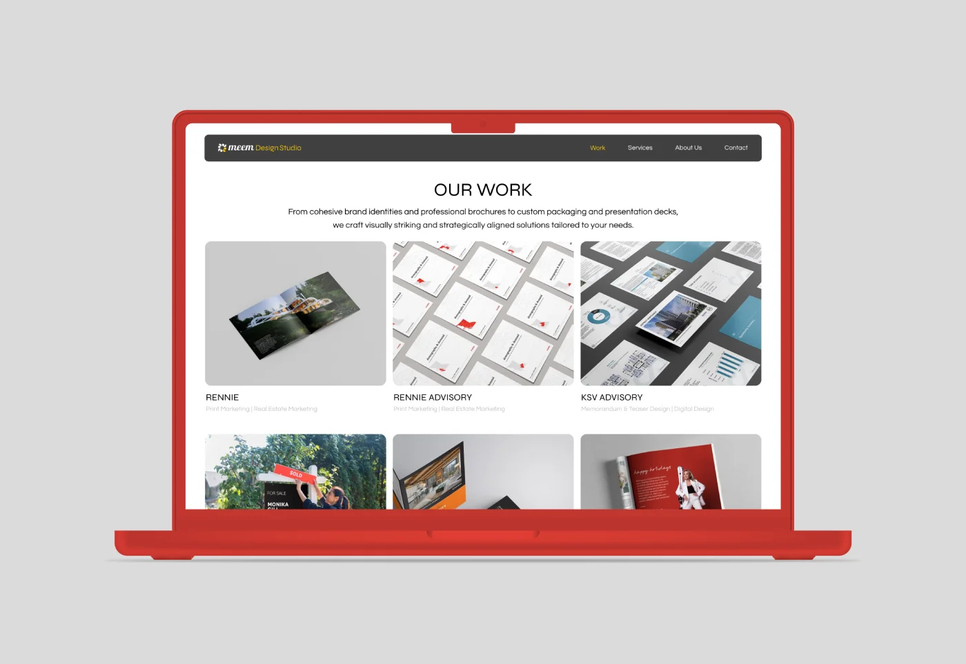Meem Studios is a Vancouver-based graphic design agency specializing in brand identity, packaging, and print design. Long Square Studio developed a custom website tailored to the agency’s creative workflow, featuring their portfolio, case studies, and service offerings. The website was built in close collaboration with Meem’s design team, emphasizing visual presentation, simplicity, and high performance. Interactive sections and smooth animations enhance the visitor experience while maintaining a strong professional tone suitable for design clients.