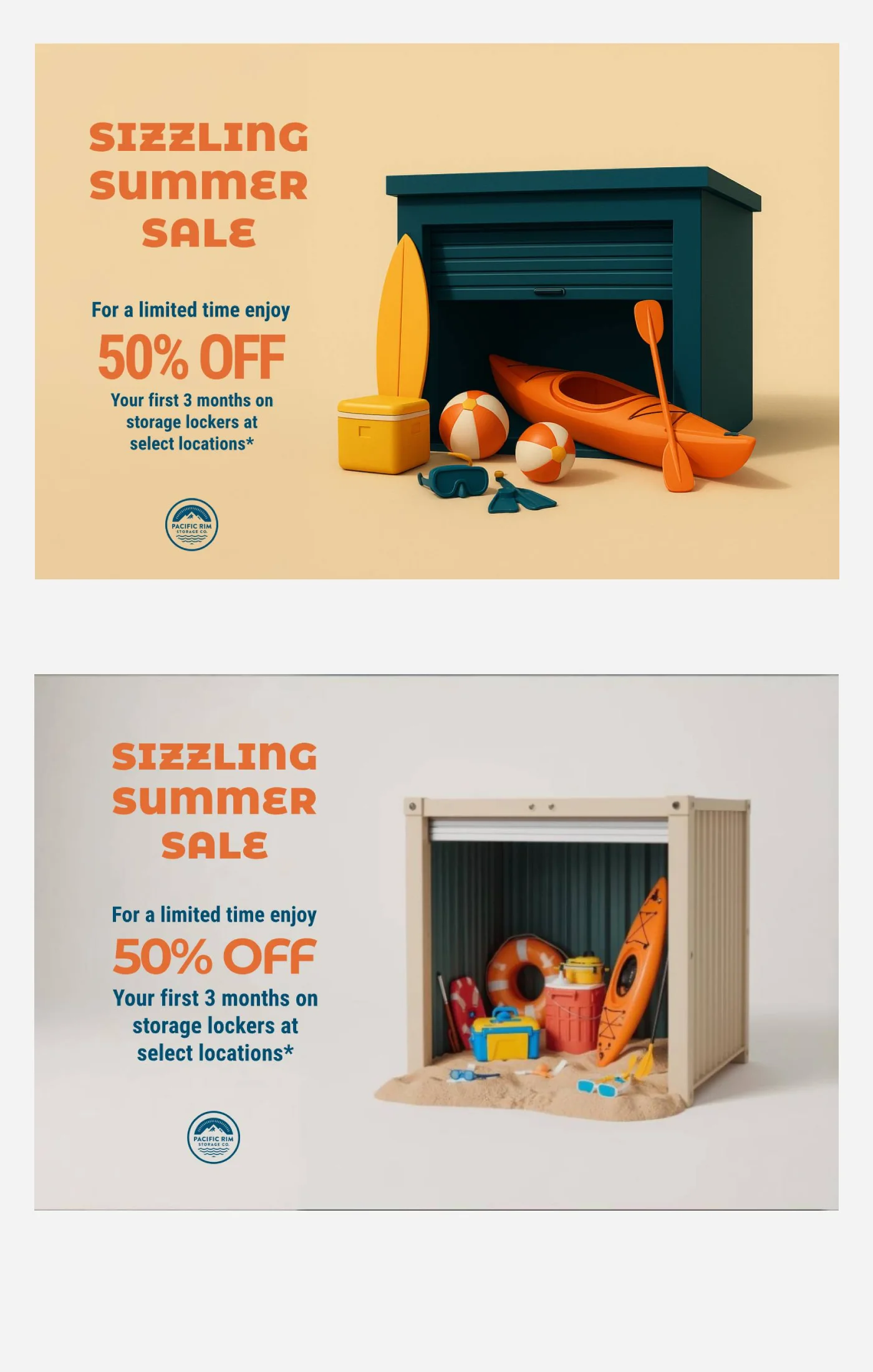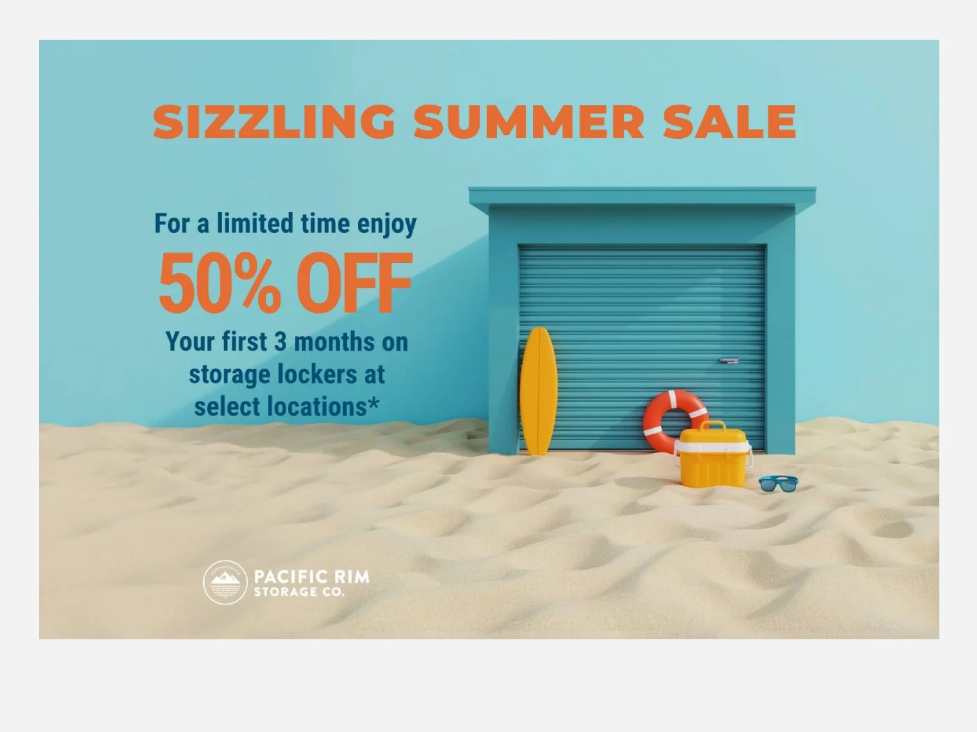 The “Sizzling Summer Sale” campaign launched in June 2025 to promote Pacific Rim Storage’s summer promotion across all Vancouver Island branches.